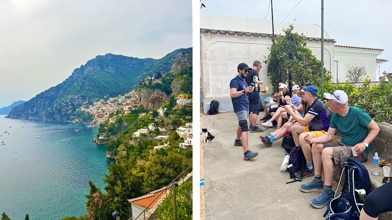 Dagen etter var det klart for første vandredag og etter frokost spente vi på oss joggeskoene og satt kursen mot Agerola, startpunktet for dagens tur. Her fikk vi med oss deilige hjemmelagede sandwicher og satt i marsj på Gudestien (på italiensk «Sentiero degli Dei»). Denne turen har en helt fantastisk utsikt over havet og vi fikk se mange av de fine landsbyene som ligger langs kysten.