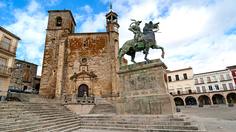 I dag er sykkelturen enkel og går gjennom vakkert landskap på en nesten trafikkfri vei i flott naturlandskap, preget av vakre blomster og fugler. Et flott område med gressganger samt eike- og korketrær. Her avler de ville okser til tyrefekting, samt den berømte sorte “Iberico”-grisen, som går fritt rundt og spiser eikenøtter for å ende sine dager som den fantastiske Iberico-skinken. Dette er det typiske langstrakte, om vinteren ugjestmilde, om sommeren gloheite Extramadura. Dere må unne dere god tid i Trujillo! Byen er full av historie og skjønnhet midt i et svært tynt befolket område. Trujillo ble velstående takket være at mange av de første oppdagelsesreisende og conquistadorene av Amerika opprinnelig var fra dette området.
