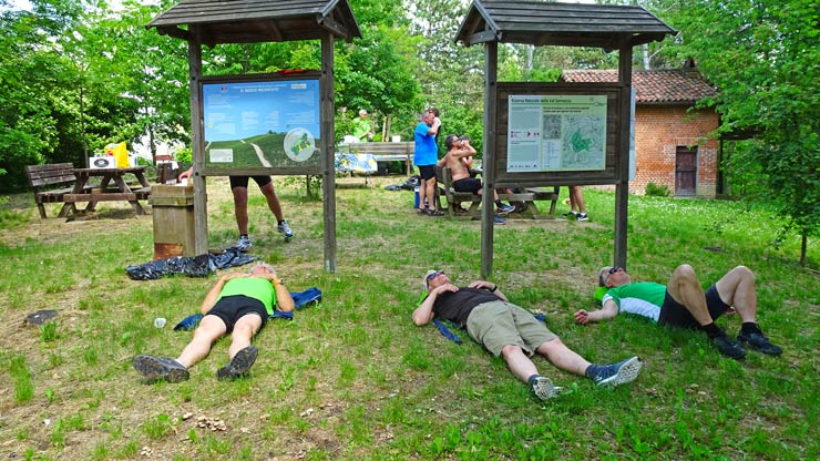 Det utfordrer og sammensveiser en vennegjeng ute på eventyr, vel vitende om at de aldri er helt «lost in translation» eller tapt bak en vogn eller sin sykkel, for guidene improviserer ut fra solid erfaring, og turoperatøren sikrer alltid i bakkant. Til dags dato har vi ikke opplevd ulykker og brysomme hendelser av noen betydelig art, enda vi er gamle gutter femti pluss og oppover. Kanskje det også er derfor. Glemmes skal heller ikke den oppofrelsen som turoperatøren gjør når det gjelder å demonstrere hvor farlig det for eksempel kan være å sette fart i en utforbakke eller bremse på vått underlag. Vi satt lenge ved hans forstuede fot i tiden etterpå, på diverse tavernaer og hvilesteder i vakre Piemonte, og lærte mye om det å ta risiko. Innimellom er det godt lederskap i å sykle foran som et dårlig eksempel.