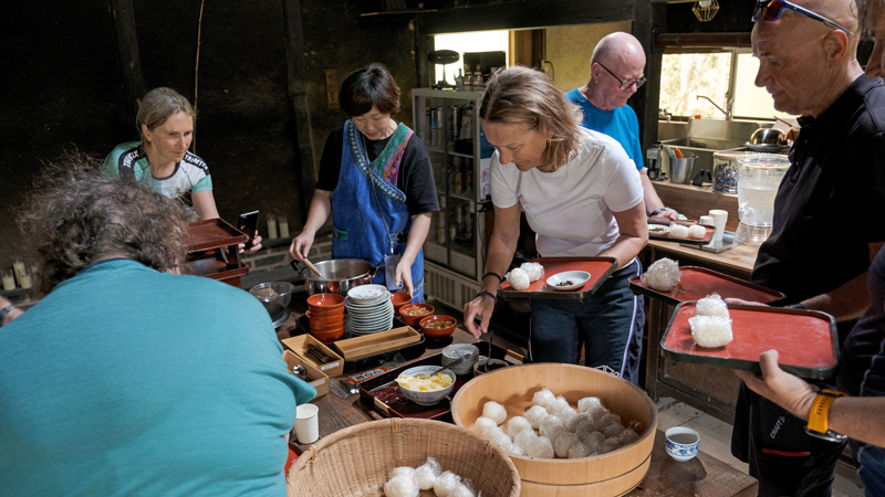 I dag reiser vi med buss til Hida-regionen. På veien dit stopper vi ved eventyrlandsbyen Shirakawa-go, hus med karakteristiske stråtak som kalles gassho-zukuri. Shirakawawa-go er på UNESCOs Verdensarvliste. Videre til Takayama før vi etter en kort sykkeltur når Hida Furukawa, hjemstedet til våre gode samarbeidspartnere SATOYAMA EXPERIENCE. Nyt naturen i vakre Furukawa, et fjellandskap som står i kontrast til kysten. Vi overnatter på SATOYAMA STAY.