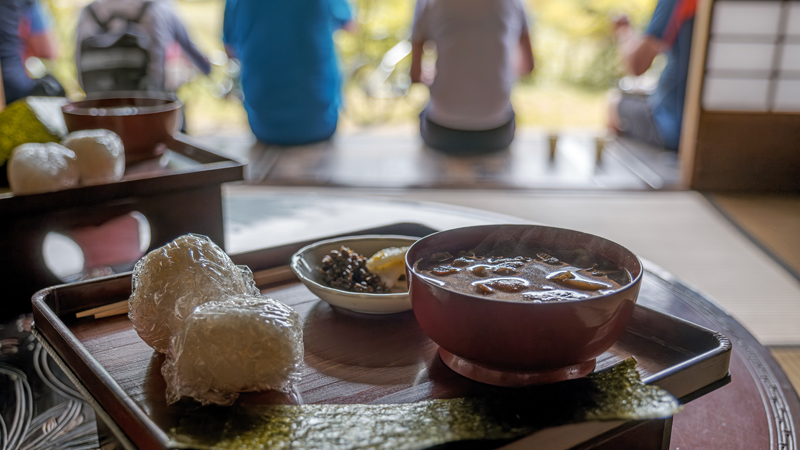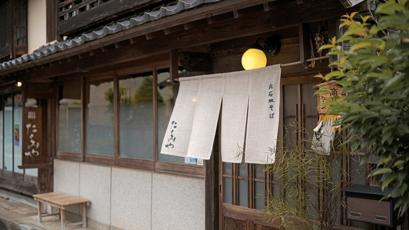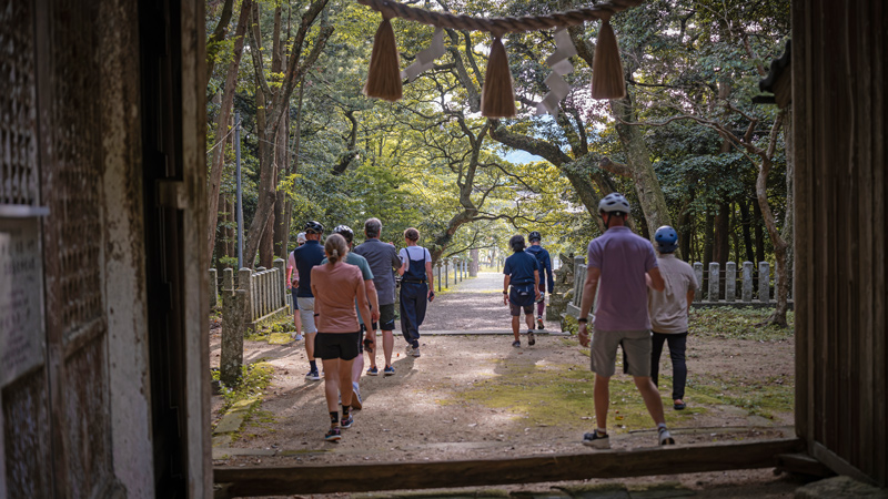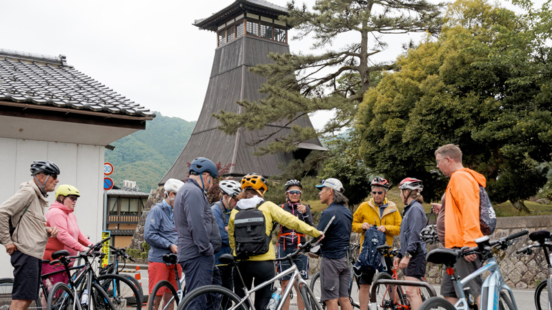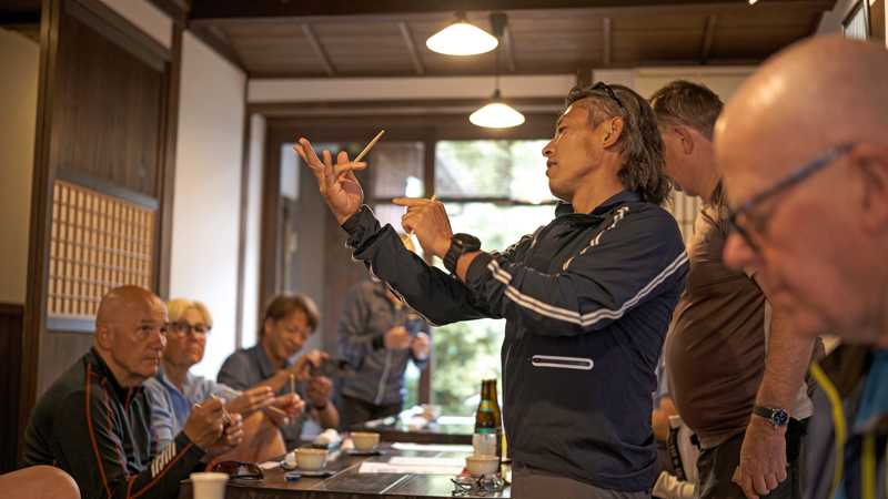 Etter frokost tar vi toget fra Sasayamaguchi til Wadayama for å starte dagens sykkeltur. Veien fra Wadayama til målet vårt, Izushi, er også en historisk vei som fører til slottsbyen. Izushi er kjent for sine bokhvetenudler som serveres på små tallerkener (Izushi soba), og det finnes rundt 50 bokhvetenudelbutikker i den lille byen. Etter å ha ladet batteriene med en lunsj bestående av nykokt soba, setter vi kursen nordover mot Kinosaki Onsen, nær Japanhavet.