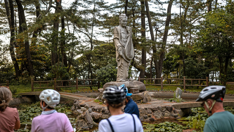 Vi forlater Ine havn med båt og seiler langs Miyazu-bukten til Amanohashidate. Amanohashidate har et uvanlig geografisk særpreg med 6700 furutrær som vokser på en 3,6km lang sandbanke.