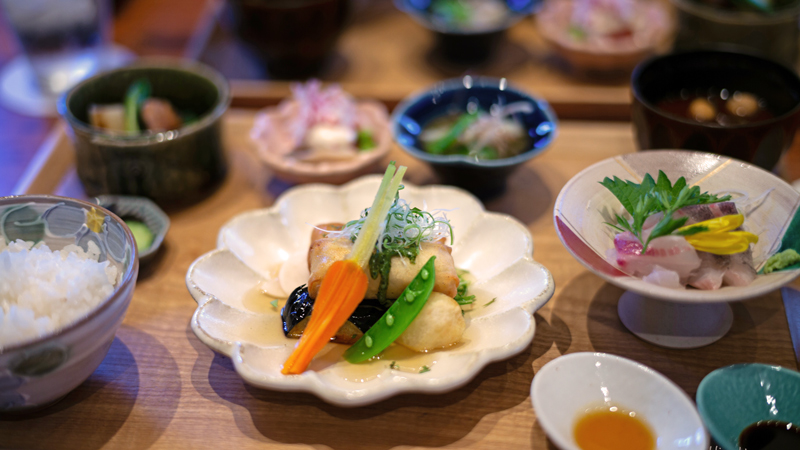 Etter som tida gikk, ble nok det mest eksotiske den japanske maten. For oss med variert kosthold til frokost, lunsj og middag ble all den ukjente maten en utfordring, samtidig med at det kun måtte brukes “pinner”. Det japanske kostholdet er uten tvil medisinsk sett veldig sunt med all sin fantastiske sjømat, men at den nesten utelukkende kommer i rå tilstand er litt uvant for oss som er vant med å varmebehandle det meste av det vi inntar. Den største utfordringen var da vi ble servert sashimi av kylling. Flere av oss smakte og syntes det var godt, men ville aldri smakt det tilsvarende dersom det ble servert her hjemme.
