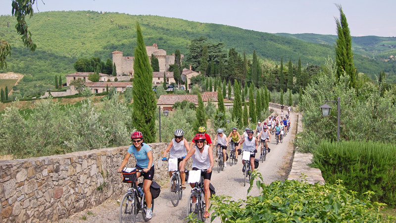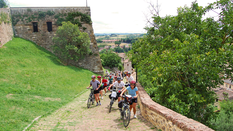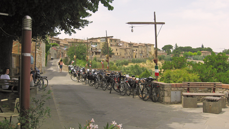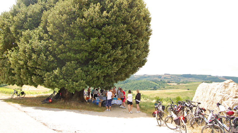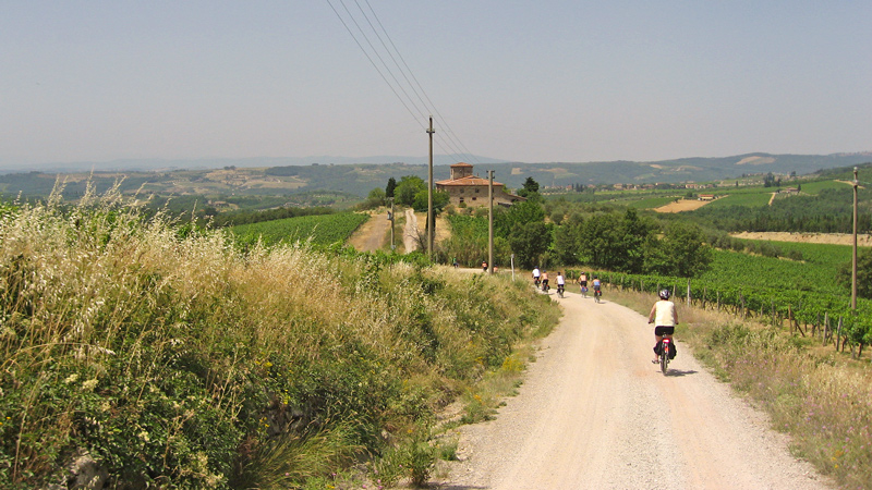 Derfor blir en sykkeltur i disse områdene et bad i estetisk velvære. Du sykler midt i det, hele tida. Vesle Sensano passer godt for forfriskninger, midt mellom San Gimignano og Volterra.
