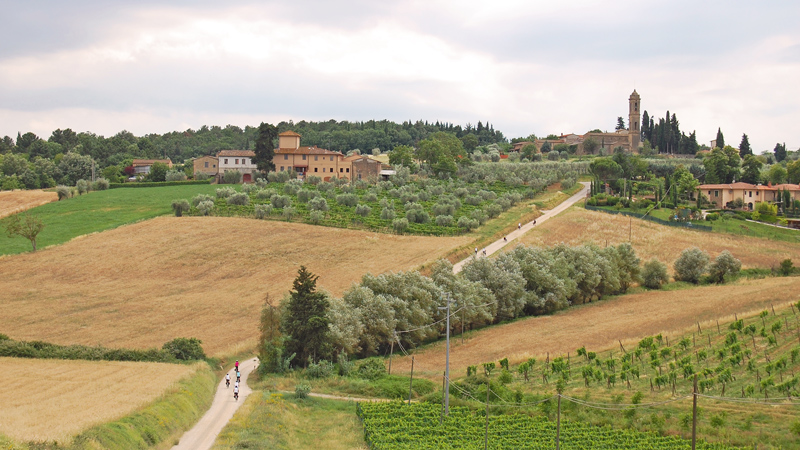 Idag beveger vi oss vestover fra provinsen Siena, inn i Pisa-provinsen. Sammen med provinsen Firenze besøker vi tre av de 10 provinsene i regionen Toscana denne sykkeluka. Det meste av tida gjennom betagende bølgende landskap, som i årtusener har blitt foredlet av diverse varianter av vindruer og oliventrær.
