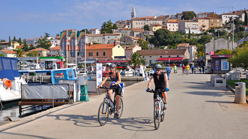 Dagens etappe går fra innlandet helt ut til kysten. Forbi Visnjan sykler dere forbi et av verdens mest kjente observatorier. I Visnjan har dere utsikt helt til Porecområdet. Her er det mulig å besøke vinkjellere med vin fra området, spesielt Malvasia. Turen fortsetter til Tar, en liten by beliggende på en høyde. I Nova Vas kan dere besøke en berømt hule før dere ankommer Porec, en svært er sjarmerende by. Den middelalderske gamlebyen er som et postkort med sine vakre hus og trange brosteinsbelagte gater, små torg og hyggelige butikker. Den bysantinske St. Euphrasius-basilikaen fra 500-tallet står oppført på UNESCO`s verdensarvliste.