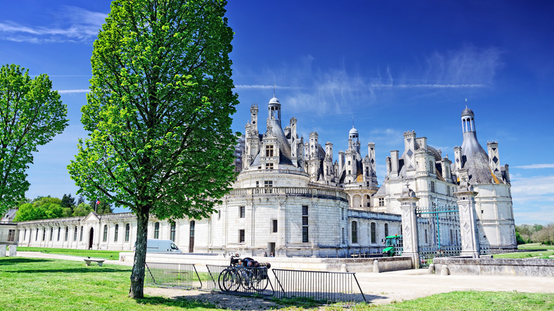 Dagens etappe tar deg langs bredden av Cherelven til den lille byen Montrichard med sin gamleby fra middelalderen. Videre sykler du gjennom vakre landsbyer og vinmarker før du ankommer landsbyen Cheverny med sine elegante steinhus. Hovedattraksjonen er likevel det store hvite slottet i klassisk stil med godt bevart interiør. Prøv den lokale vinen av høy kvalitet. På vei til Blois, hvor du overnatter, må du sykle innom Château de Chambord, det største og mest imponerende slottet i Loiredalen – med alle sine kupler, tårn og spir, over 400 rom og 365 ildsteder. Ta en rundtur i Blois med slottet på toppen og en livlig gamleby med smale gater, trapper og gamle bygninger.
