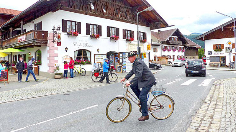 På sykkel ut av München, gjennom typiske landsbyer til den idylliske innsjøen Starnberger See med mange badeplasser og hyggelige vertshus. Fra Riegsee kan du nyte utsikten mot de bayerske alper. Overnatting i landsbyen Murnau med sitt kjente kunstmuseum (Blauen Reiter).