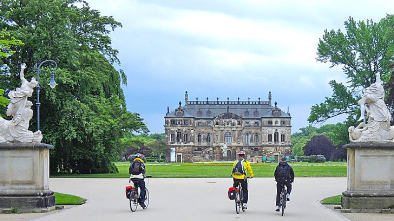 På fredfulle sykkelveier langs elva kan du etter vel 10 kilometer krysse den med båt og besøke det vakre Pillnitz slott, ikke minst slottsparken fra tidlig 1700-tallet. Med palmehus, sin engelske hage og kinesiske pavillion, Europas eldste kamelieplante og barokk arkitektur. Videre mot Pirna, en lun liten Dorf med store historiske kontraster. Her hvor venezianske Canaletto malte de vakreste landskapsmotiver, fordervet nazistene historien med sitt eutanasiprogram og likviderte 15000 mentalt syke på pleieanstalten Sonnestein. I dag museum og minnested. 12km seinere i Kurort Rathen, kan du gå opp til Basteiaussicht for herlig utsikt over sandsteinsformasjonene i Sächsische Schweiz. Hyggelig med lunsj her opp på stedets Biergarten.