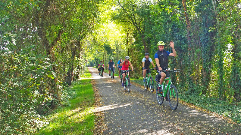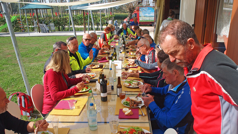 På siste sykkeldag tar vi en rundtur i området og sykler opp på åsryggen Montello. Første og eneste dag med litt bakker. Lunsj på hyggelig Osteria med meget velsmakende mat. Underveis vil dere se flere militære minnesmerker til minne om de dramatiske hendelsene og tragiske kampene i 1918.