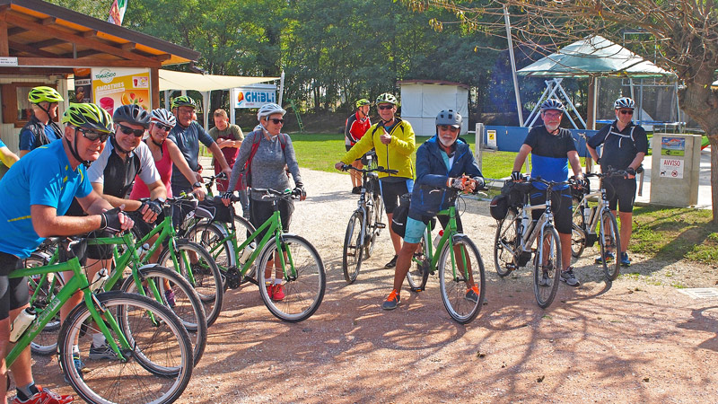 Første sykkeldag går langs den kjente sykkelveien Val Sugana. Med flott utsikt mot fjellene og langs elva Brenta, hele dagen på flotte sykkelstier (her har Norge mye å lære!!) og rolige småveier. Vi sykler lett nedover dalen med høye fjellsider på begge sider.