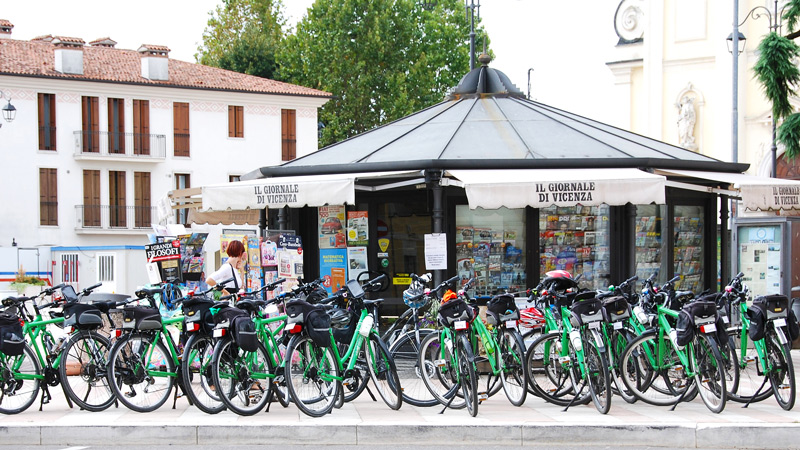 Ut på landet og på småveier på kryss og tvers gjennom tettsteder og landsbyer. Første sykkelstopp er i sjarmerende Marostica. Byen er kjent for sin store sjakkmønstrede plass «Piazza degli Scacchi». Vi unner oss en espresso på torget. Pikniklunsj i naturen før vi sykler videre mot elegante Vicenza. En rekke bygg av 1500-talls arkitekten Andrea Palladio står på Unescos verdensarvliste, og er verdt et besøk! Palladios tanker og ideer kom til å prege den europeiske arkitekturen i århundrer. Byens spesielle torg er senere kopiert rundt om i hele verden. Ta en rundtur i byen og se på byens severdigheter. Middag på egen hånd i kveld, guiden kommer med tips. Hotellet er ca. 15 min gange utenfor sentrum.