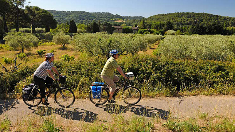 Første sykkeldag går gjennom vakkert landskap med fruktproduksjon og vinmarker. Vinmarker i Cote du Rhone (Lirac, Laudan) fram til St. Laurant. Vesle Uzes med sine 8000 innbyggere er en idyllisk liten perle med sin restaurerte renessansearkitektur, krokete gågater og hyggelige små torv. Place aux Herb er en oase for ankomne syklister. For ikke å glemme markedsplassen og det imponerende Dukepalasset.