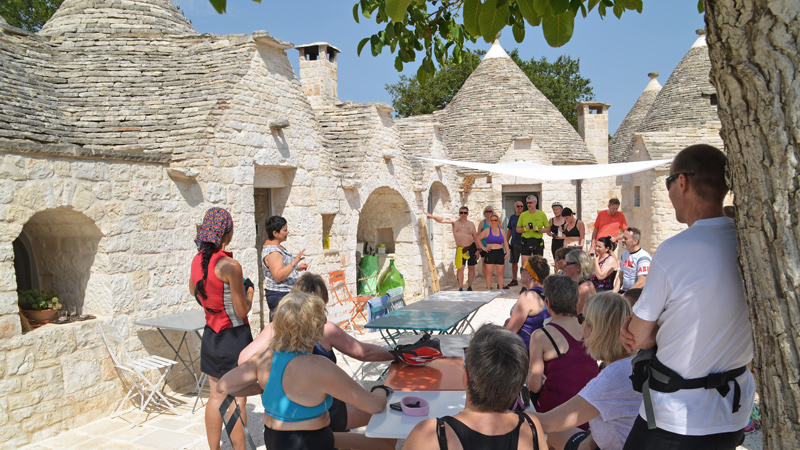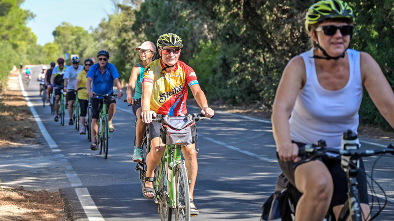 Vi begir oss ut på landsbygda igjen. Første stopp på Piazza Marconi i S. Michele Salentino. Videre til vesle Oria med sitt middelalderslott fra 1227 som totalt dominerer stedet. Vi sykler videre til Manduria hvor vi stopper vi på Piazza Garibaldi for å smake på typiske Primitivoviner fra området, samt spise lunsj. Enoteca del Primitivo. Deretter ut mot havet, eller direkte til Masseria Bosco. Her kan vi nyte svømmebassenget i nydelige omgivelser blant tusenvis av oliventrær.