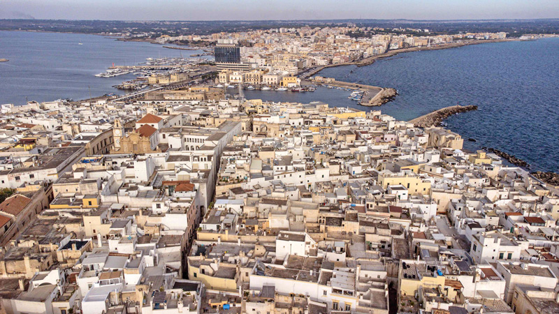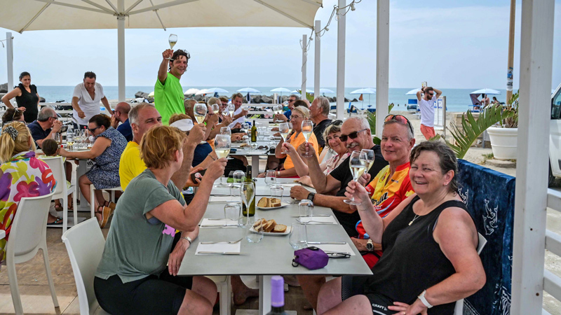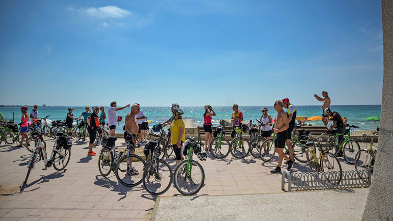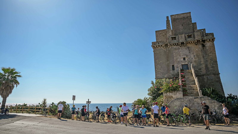 Vi sykler ut mot det Joniske hav og Tarantobukta. Vi skal gjennom småbyer langs kysten som Porto Cesario, Torre St. Isidoro og Santa Caterina. Stopp ved et av tårna langs kysten, som alle representerte en rekke av forsvarsverk mot tyrkisk invasjonsfare. Pikniklunch før vi fortsetter langs kystveien retning Gallipoli. Vi har tid til en barstopp i Santa Catarina og en dukkert for de som ønsker det. Deretter Gallipoli, denne idylliske gamlebyen som i virkeligheten er ei øy knyttet til fastlandet via en bro. Opprinnelig var det grekerne som grunnla ”Kali-polis” (den vakre byen). Gamlebyen bestående av krokete smågater langs hvite husfasader innbyr til en spasertur.