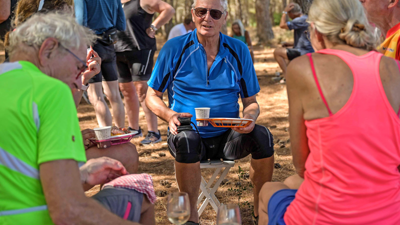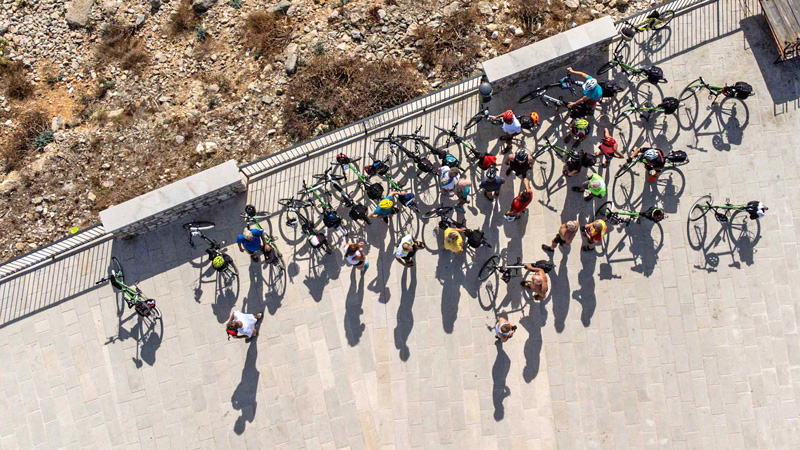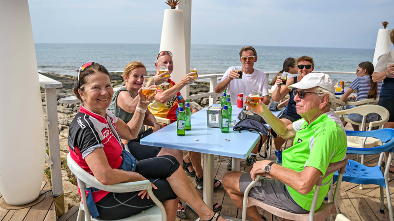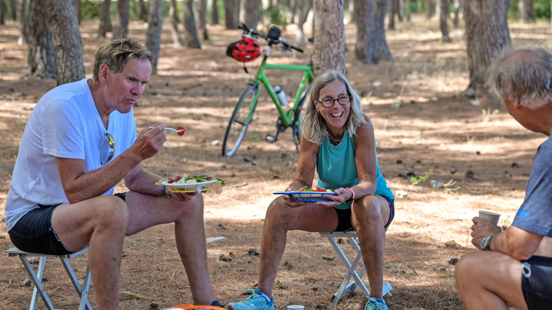 Fordeling med ca. 50/50 el-sykler/ manuelle fungerte bra, kanskje mest fordi turlederne som leder tempo ikke har el-sykler. Gruppa var homogen med mange sosiale, erfarne Oliven-reisende.