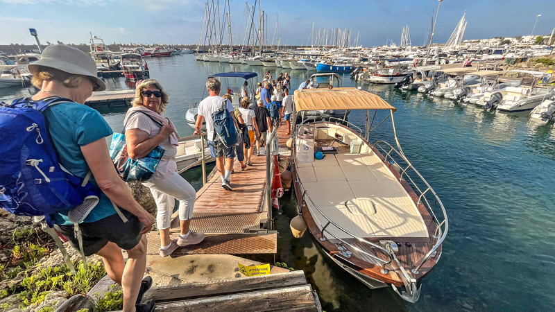 I dag drar vi først vestover og siden sydøstover mot Adriaterhavskysten. Langs landeveier omgitt av svært gamle oliventrær. Terrenget er relativt flatt med noen få bakker, særlig på slutten av dagen. Vi stopper for pikniklunsj, før vi ankommer Martina Franca. Gamlebyen har en tiltalende blanding av barokk- og rokokkoarkitektur. Også her finner vi de spesielle Trullihusene. Cafe Barocco, Piazza kan være en hyggelig stopp. Så mot middelalderbyen Ostuni, en hvit by som ligger på 3 åstopper. Svært vakker om kvelden når middelalderborgene lyses opp. Med sine trange brosteinsbelagte gater og bratte trapper opp mot den eldste bydelen på toppen av åskammen minner den mer om en arabisk by. En av de flotteste byene i Sør-Italia synes vi.