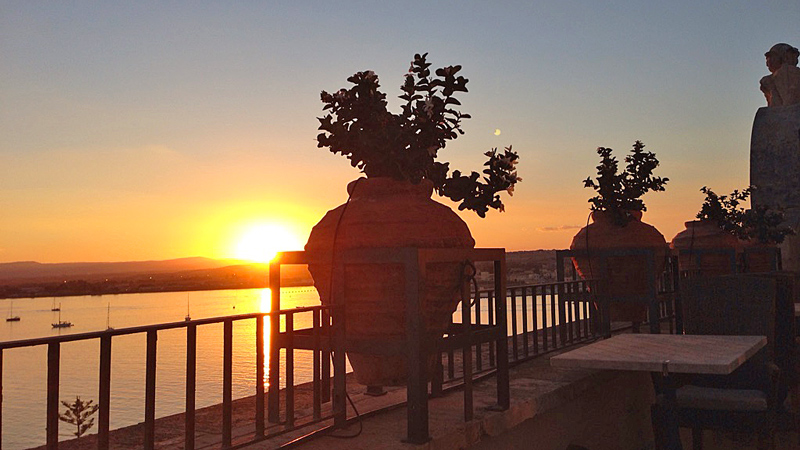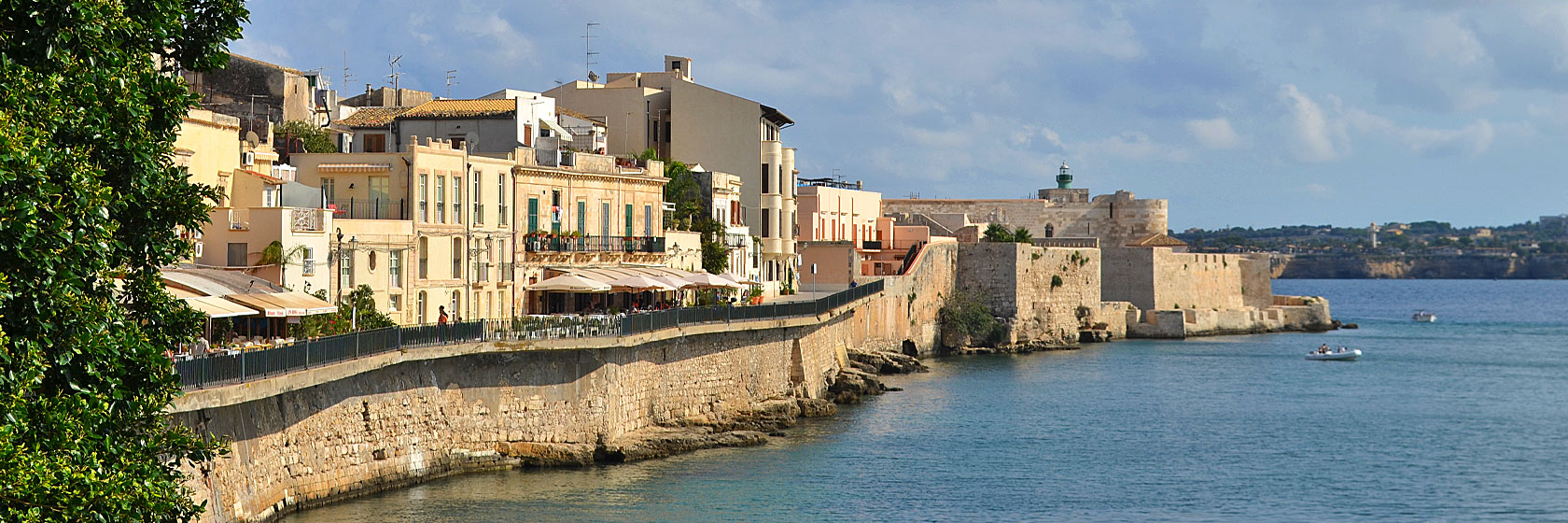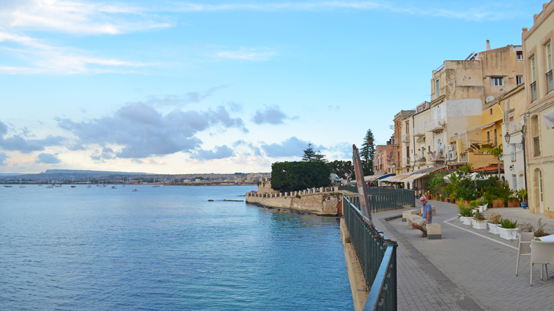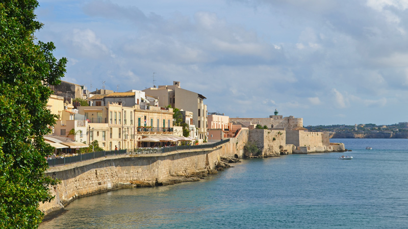 Ortigia, en av de vakreste bydeler i Italia, dukker vakkert opp på høyre front. Denne landtungen som lokket grekerne til bosetting og seinere erobring og dominans, har akkurat det man ønsker seg. Og den scorer full pott i samtlige av de mest prestisjefylte reiseguider. For en historie denne byen har! Blant annet det største og vakreste greske teater utenfor Hellas. Samt piazzaen i gamlebyen – du verden! Og katedralen som er bygd inn i gamle doriske greske tempelsøyler fra 2500 år f. Kr. – må oppleves på nært hold.