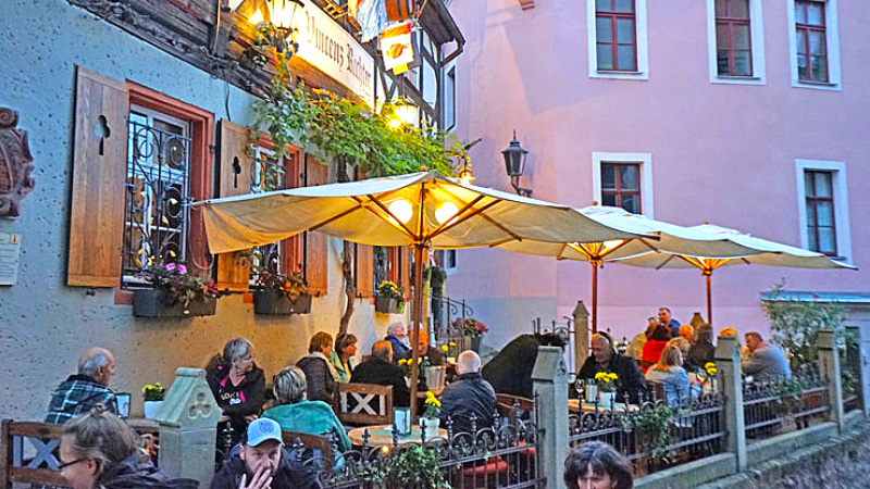 I dag sykler dere på «Elberadweg» langs elva nordover til Meissen. I Radebeul tar dere med syklene på et historisk damplokomotiv opp til Moritzburg. Her kan dere først ta et stopp på museet i huset der Käte Kolwitz bodde til april 1945. Deretter sykle innom vinslottet fra 1500-tallet, bedre kjent som kongeslottet i filmen «Tre nøtter til Askepott». På sykkel tilbake til «Elberadweg», kan dere ta et stopp i hyggelige Altkötzschenbroda. Vinsmaking på kjent vingård før dere sykler rolig inn til hotellet i Meissen.
