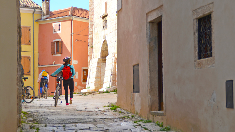 Sykling forbi saltgruvene Sečovlje hvor det på enorme flater og gjennom naturlig fordampning utvinnes havsalt. Herfra krysser du over grensen til Kroatia. Et stykke går ruten gjennom den kroatiske delen av Istria, den største halvøya ved Adriaterhavet. Her møter du et lett kupert terreng på vei til Porec. Dette er den viktigste byen på vestkysten av Istria. Den middelalderske gamlebyen er som et postkort med sine vakre hus og trange brosteinsbelagte gater, små torg og hyggelige butikker. Den bysantinske St. Euphrasius-basilikaen fra 500-tallet står oppført på UNESCO`s verdensarvliste.