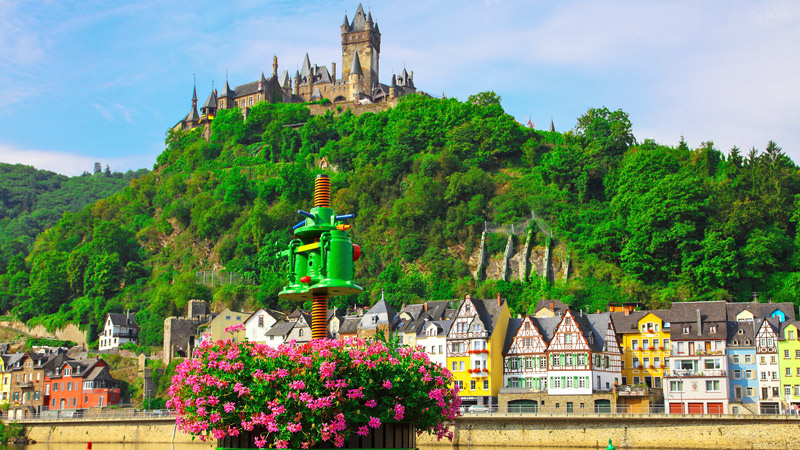 I dag går turen langs den rolige Mosel-elven, gjennom det pittoreske Winningen, som er kjent for sine vingårder og naturskjønne omgivelser. Ta en pause for å nyte sjarmen i Kobern-Gondorf, der historiske bindingsverkshus inviterer deg til å utforske byen. Om du ønsker kan du ta en spennende avstikker til det fortryllende slottet Eltz, et eventyrlignende vidunder som ligger midt i den sjarmerende landsbyen Moselkern. Her kan du beundre middelalderens prakt, før du vender tilbake til Moselbredden og fortsetter reisen. Ruten utfolder seg i et fantastisk landskap før du ankommer Cochem, en sjarmerende middelalderlandsby full av historie, og med slottet Reichsburg som troner på toppen av åsen. Vinsmaking i Cochem.