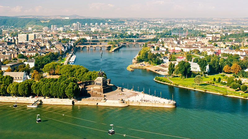 Sykkelturen fortsetter langs Rhinens vestbredd, og du vil oppdage fengslende severdigheter og legendariske landemerker. Mellom Urbar og St. Goar kan du la deg fascinere av den ikoniske Loreley-klippen, som er gjennomsyret av myter og folklore. Ifølge legenden var det en gang en sirenelignende skikkelse som fortryllet sjømenn med sin hypnotiserende sang, noe som førte til deres død. En bronsestatue ved foten av klippen fungerer som en gripende påminnelse om denne mytiske fortellingen. Når du tråkker videre, kommer du til den sjarmerende byen Boppard. Her kan vi anbefale å ta stolheisturen som går til «Vierseenblick» (utsikt over fire innsjøer). Fra dette utsiktspunktet får du et enestående panorama over Rhinen (ikke inkludert). Etter Boppard lokker Koblenz med sin rike historie og sine majestetiske landemerker. Høyt over byen ligger den formidable festningen Ehrenbreitstein, som gir et glimt inn i regionens sagnomsuste fortid. Siden den nasjonale hageutstillingen i 2011 har besøkende kunnet krysse Rhinen via taubane, noe som gir sømløs tilgang til denne historiske prøyssiske høyborgen. Ved sammenløpet av elvene Rhinen og Mosel ligger det ikoniske Tyske hjørne, der en storslått statue av keiser Wilhelm I ønsker besøkende hjertelig velkommen.