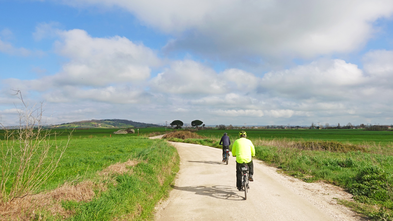Velkomstmøte på hotellet med utlevering av sykler, kart- og informasjonsmateriale. Du starter turen på fin sykkelvei langs Tiber-elven til landsbyen Labaro. Videre går ruten gjennom den flotte Veio regionalparken der historie og kultur smelter sammen i et unikt landskap, inn til den vakre byen Campagnano di Roma i Lazios milde åser. Byen, som også er kjent for dyrking av artisjokker og vin, har beholdt atmosfæren fra middelalderen. I dag kan du velge mellom et hotell med svømmebasseng ca. 3km utenfor byen eller et enkelt hotell i sentrum som har en god restaurant.