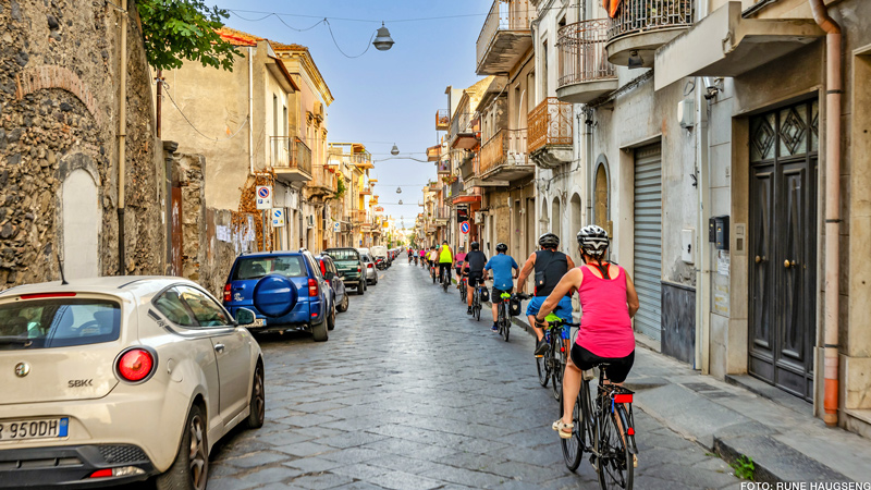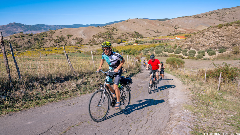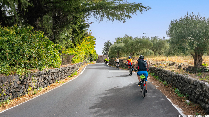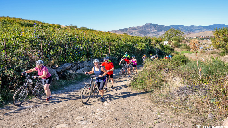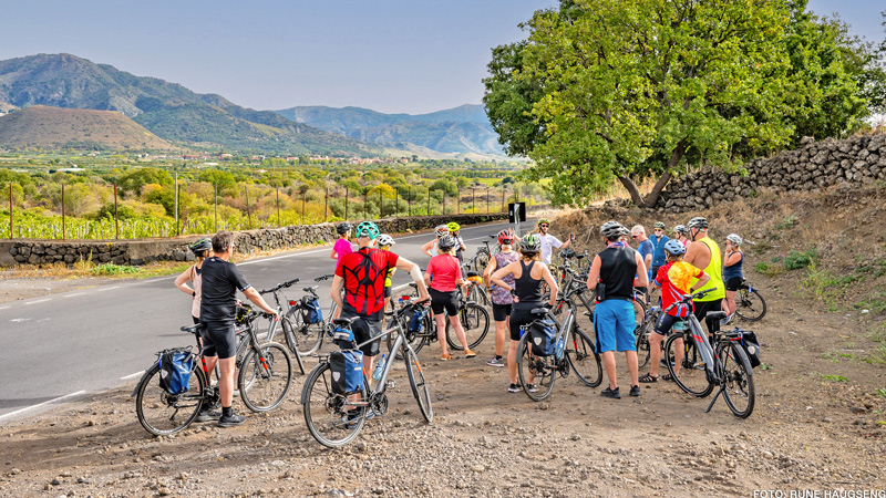 Sammen med tre av våre eminente guider i Italiateamet har vi jobbet fram ei ny gruppetur på sykkel, på Sicilia. Her sykler vi langs havet kombinert med et par dager i kremen av siciliansk vinproduksjon i områdene rundt vinhovedstaden Randazzo. Videre går sykkelturen langs foten av Etna og ut til det Joniske hav og Giardino Naxos, Acireale, Aci Trezza og ned til barokkvakre og upolerte Catania. En blanding av gårdshotell (agriturismo) og byhotell, frodig og variert natur, og ikke minst det ekte syd-italienske i all sin vennlighet og smakfullhet.