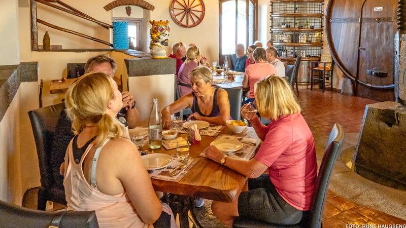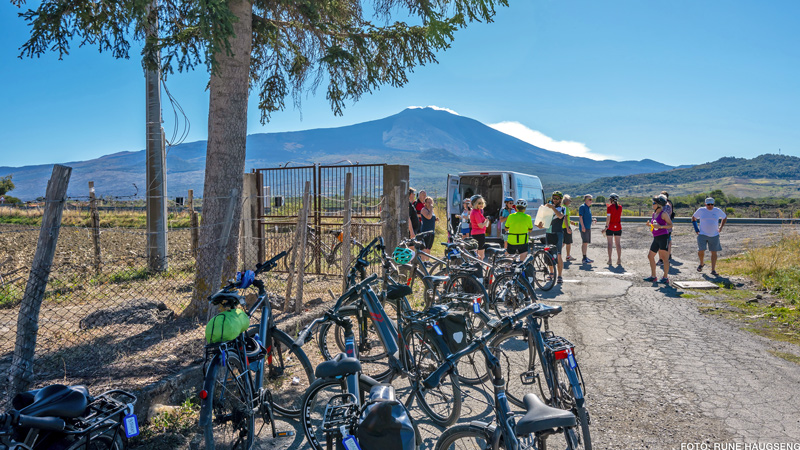 Idag sykles det nær Nebrodifjellene langs foten av Etna for å se de fantastiske lavastrømmene som kommer fra vulkanen. Vi tar en sving innom landsbyen Maniace få km fra hotellet før vi fortsetter på landeveier blant beitende sauer og rural stemning, i svak stigning retning Randazzo. Før vesle Murazzorotto svinges det ned på småveier til et sjeldent vakkert sted for lunsj og vinsmaking, få km syd for Randazzo; Gården Etna Quota Mille. Bare vakkert! Deretter få km til middelalderbyen Randazzo, ved den nordlige foten av Etna. En spektakulær beliggenhet, tettpakket av historie og vakker arkitektur, som inviterer til byvandring.
