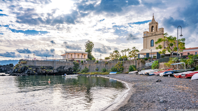 Strendene, barene, restaurantene, småhavnene og kystlandsbyene ligger på rekke og rad, for pur glede; San Marco, Fondachello, Mascali, Riposto, Giarra, Santa Tecla og endelig Santa Maria La Scala, hvor vi styrer opp mot vakre Acireale over havet. En hyggelig småby med sjarmerende plasser, arkitektur i barokkstil, den imponerende basilikaen og et yrende lite samfunn, der den troner mellom sitronlundene og havet.