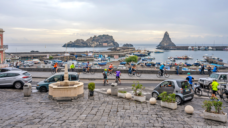 Vi forlater Acireale langs via delle Terme og sykler gjennom små forsteder ned til lille San Giovanni Li Cuti, en hyggelig landsby på den nordlige delen av Catania. Her spiser vi vår siste lunsj langs det Joniske hav. Det er ikke langt mellom de lokale herlighetene; få km syd for Mulini venter Aci Trezza, en liten sjøfartsby med 5000 innbyggere og århundrelang sjøfartshistorie og et yndet sted for italienske sommerturister. Byen har også vært åsted for innspilling av berømte filmer.