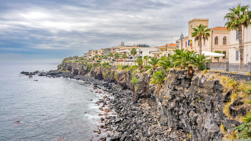 Et par km nærmere Catania ligger Aci Castello, storebroren til Aci Trezza med sin vakre borg fra normannertida, sine små handelsgater og de store svarte lavasteinene ved vannkanten, hvor soltilbederne ruller ut sine badehåndklær.