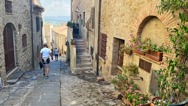 Du krysser elva Arno og sykler langs den gamle pilegrimsveien Via Francigena som i middelalderen ledet til Roma og de hellige gravene til apostlene Peter og Paulus.