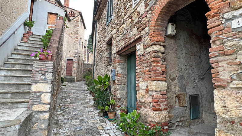 Langs vinveien på ekte toscansk landsbygd mot vakre Montecarlo. Herfra zoomer du inn vin- og olivenlandskapet under og rundt deg. Vinbodegaer (Fattoria del Teso f.eks.) kan besøkes. Videre på rolige småveier til Montecatini, midt mellom Pisa og Firenze. En småby med 20 000 innbyggere, yrende restaurantliv og kjent for sine kurbad.